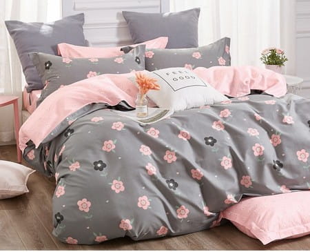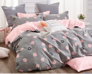 Komplet pościeli dwustronnej 160x200 cm kwiaty morelowe na szarym tle