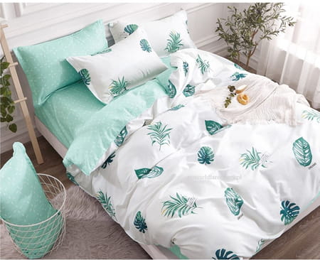 Komplet pościeli dwustronnej 160x200 cm liście zielone na białym tle