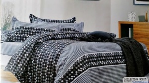 Komplet pościeli dwustronnej 160x200cm Drobna Kratka czarna z popielem