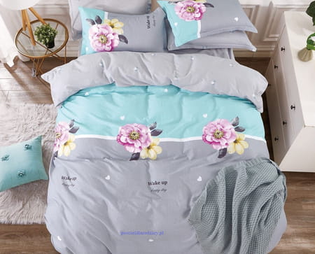 Komplet pościeli dwustronnej bawełna satynowa 200x220 cm morska z popielem kwiaty