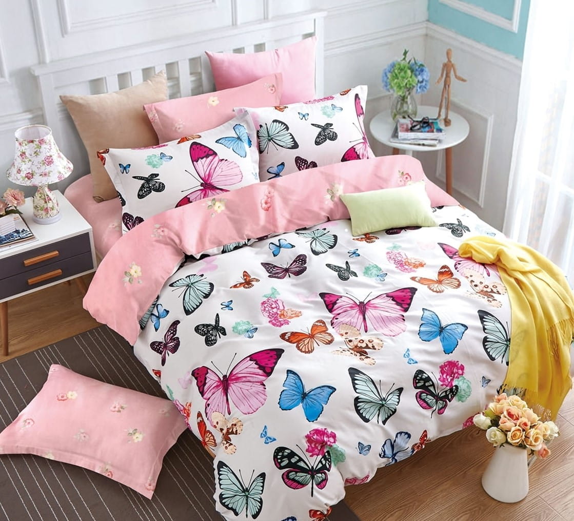 Komplet pościeli dwustronnej bawełna satynowa 160x200 cm motylki duże