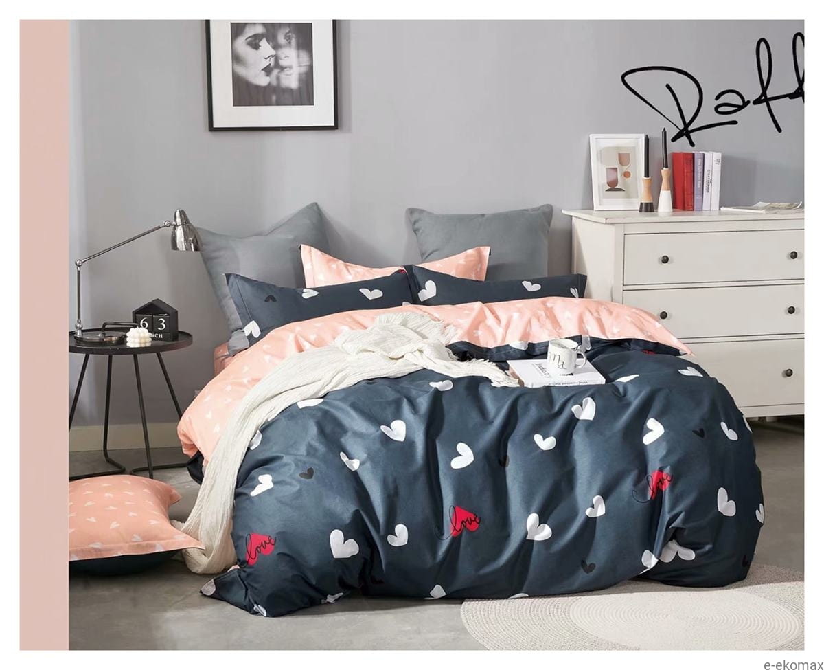 Komplet pościeli dwustronnej 160x200cm granatowej w serca