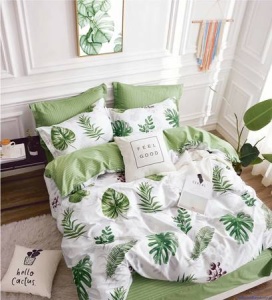 Komplet pościeli bawełniano satynowa dwustronna w liście zielone 200x220cm