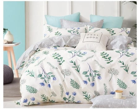 Komplet pościeli dwustronnej z bawelny satynowej w rozmiarze 160x200cm niebieskie kwiatuszki