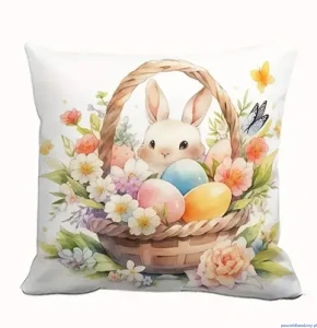 Poszewka 45x45cm dekoracyjna króliczek w koszyczku kwiaty pisanki