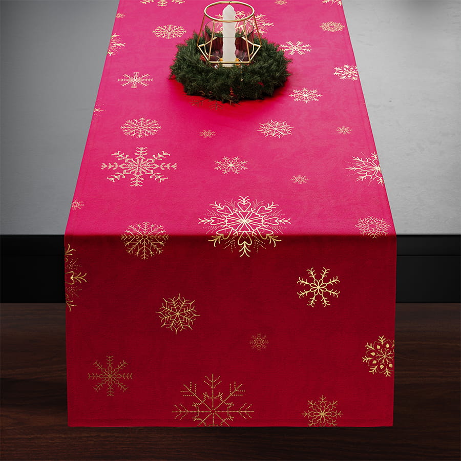 Bieżnik świąteczny 40x140cm velvetowy złote śnieżki wodoodporny