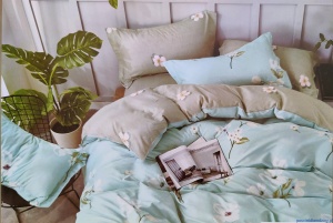 Komplet pościeli 200x220cm bawełna satynowa błekitna białe kwiaty,popiel w kwiaty