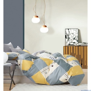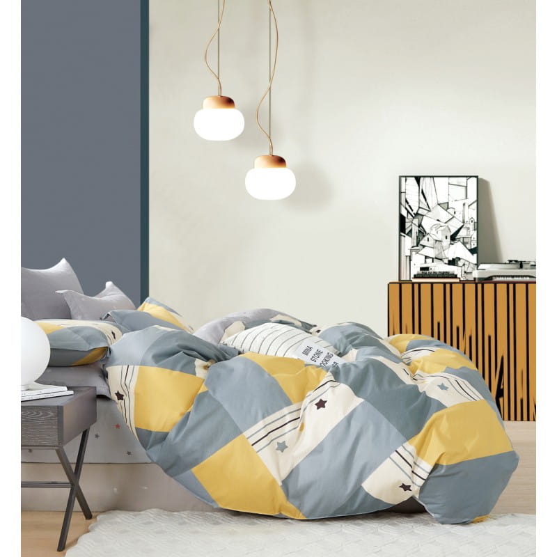 Komplet pościeli dwustronnej bawełna satynowa 200x220 cm popielata żółtym gwiazdki