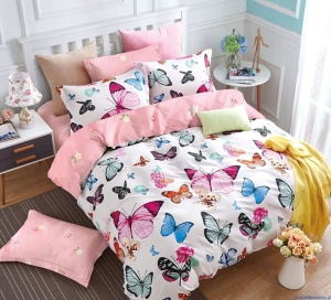 Komplet pościeli dwustronnej bawełna satynowa 200x220cm motylki duże