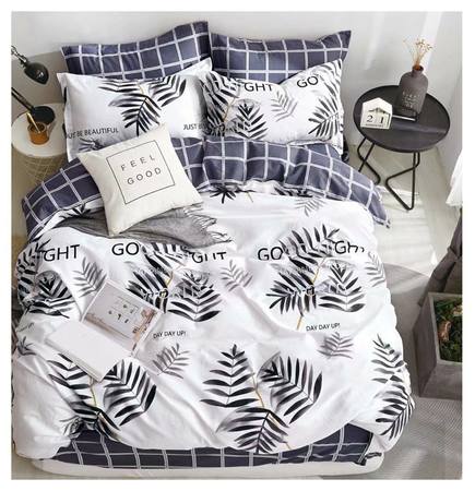 Komplet pościeli dwustronnej biała z popielatym 200x220 cm biało liście napis