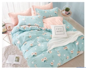 Komplet pościeli dwustronnej turkusowa 160x200cm flamingi