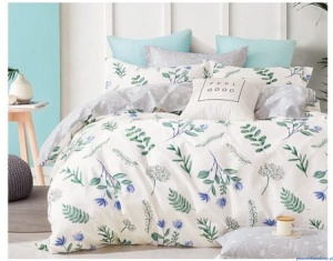 Komplet pościeli dwustronnej z bawelny satynowej w rozmiarze 200x220cm niebieskie kwiatuszki