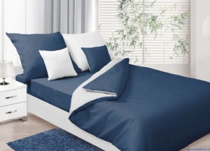 Komplet pościeli satynowej dwustronna jednobarwnej 200x220 granatowo-biała