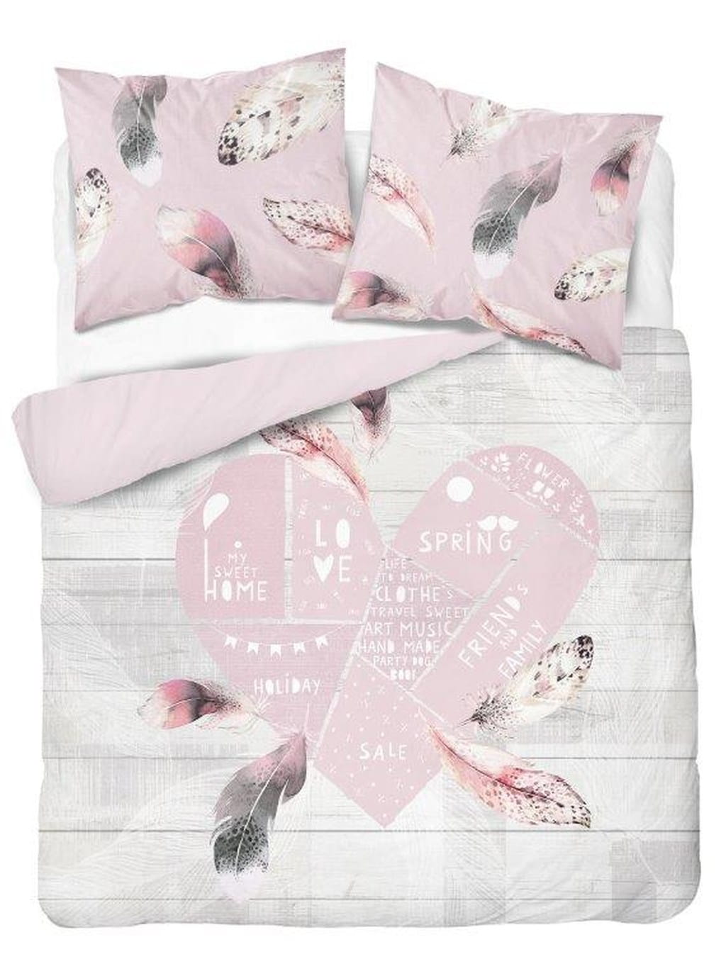 Komplet pościeli z bawełny dwustronnej 200x220cm SERCE pióra łapacz