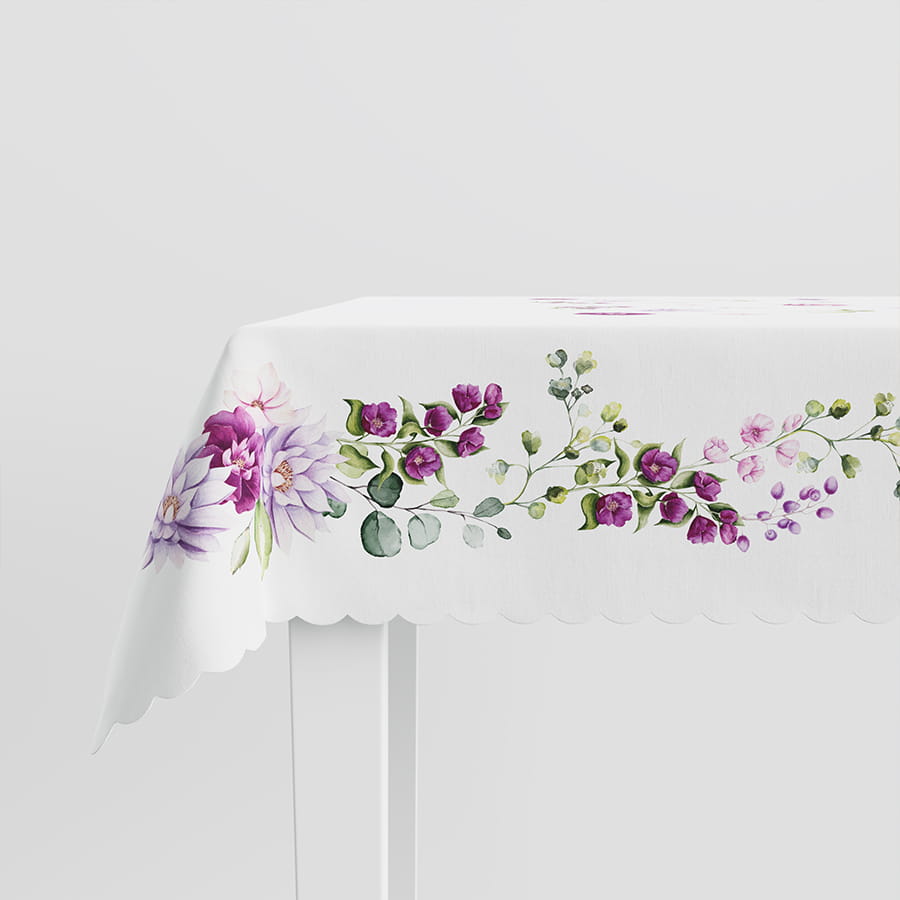 Obrus 140x220cm wodoodporny dalia z kwiatami fuksja fiolet