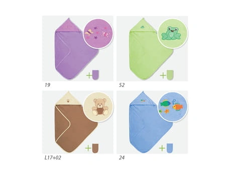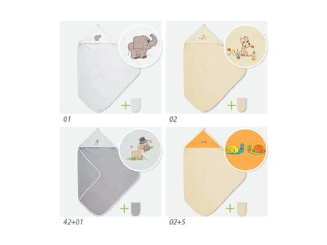 Dobrze wchłania wodę, osuszając ciało dziecka. Kapturek chroni mokrą główkę przed oziębieniem.