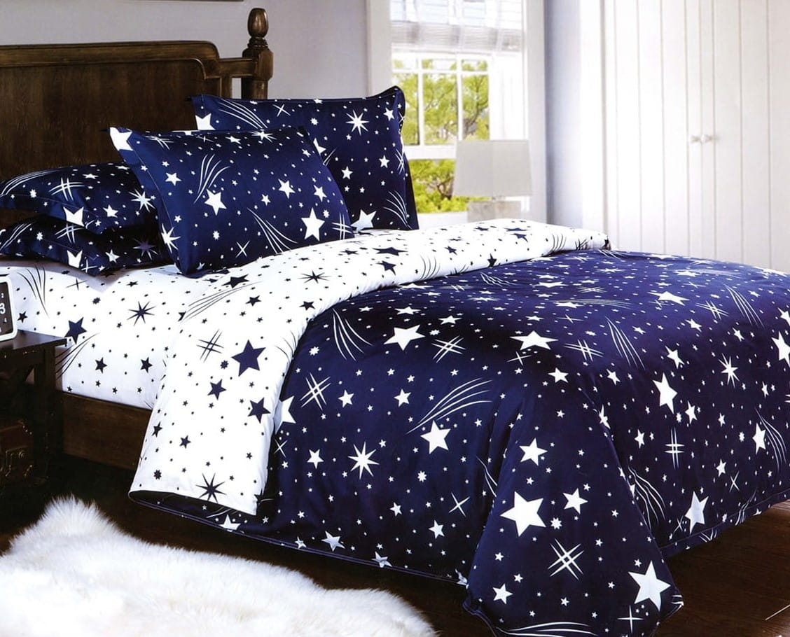 Pościel dwustronna rozmiar 160x200cm granatowa w gwiazdki białe
