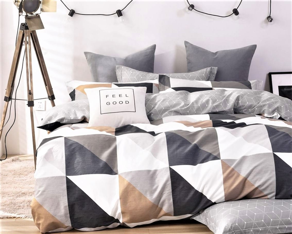 Pościel dwustronna trójkąty beż biel 200x220cm popiel wzorzysta