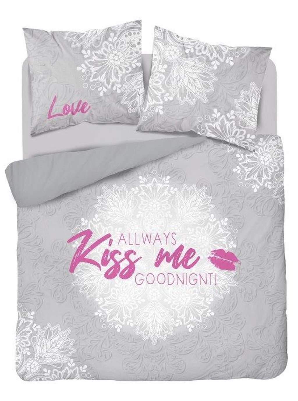 Pościel z bawełny dwustronnej 160x200cm ALWAS KISS ME RÓŻOWO POPELATA Z BIAŁYM