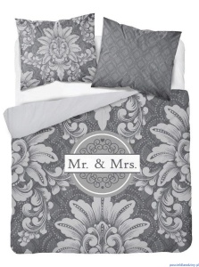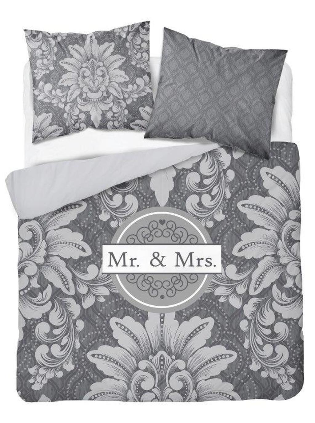 Pościel z bawełny dwustronnej 160x200cm popielato grafitowa mr & mrs