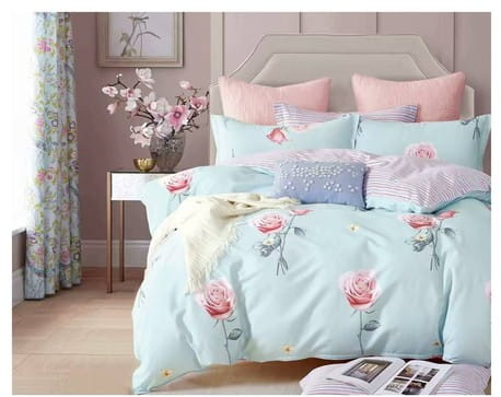 Pościel dwustronna rozmiar 200x220 błękitna w róże