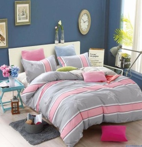 Komplet pościeli dwustronnej 160x200 cm paski różowa popiel gwiazdy